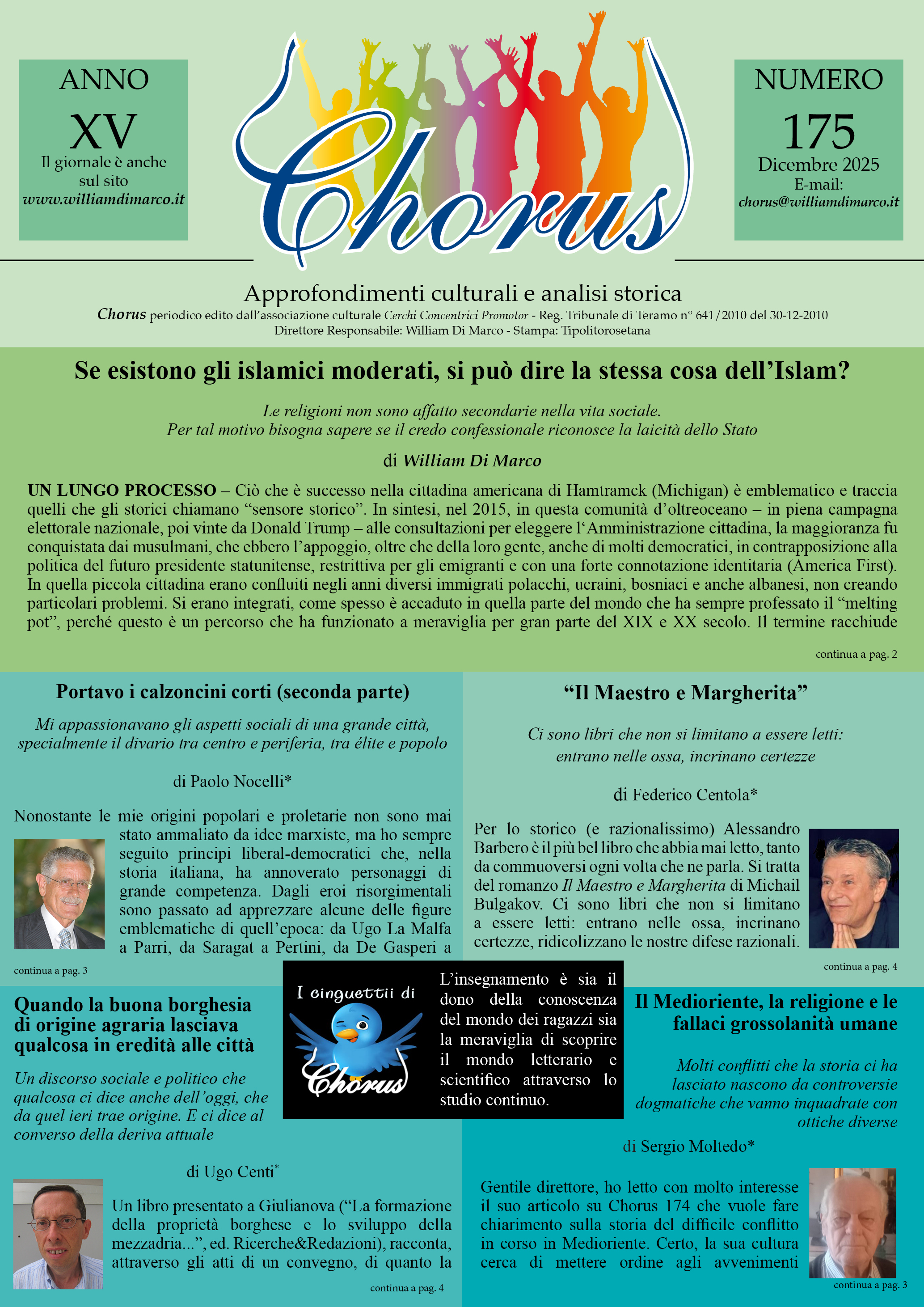 Chorus di dicembre è in edicola. I temi: Islam, “Il Maestro e Margherita”, la borghesia agraria e “Portavo i calzoncini corti”